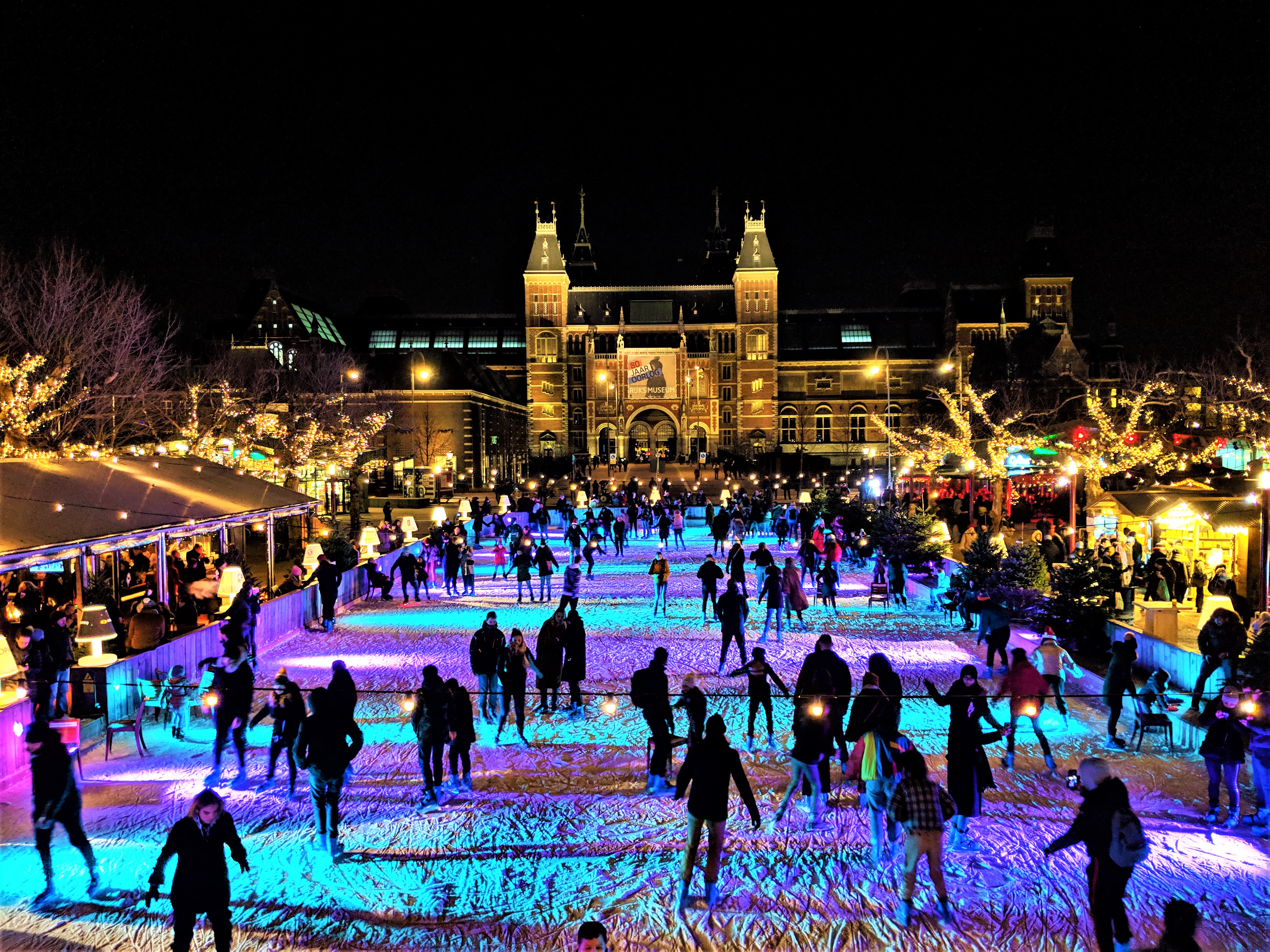 On the outskirts of the city center, you will find Museumplein, a large grassy square where a majority of Amsterdam’s major museums are located, including the Rijksmuseum and the Van Gogh Museum. The square serves as a recreation and picnic area, gathering place, and even the occasional Christkindlmarkt and ice skating rink in the winter months. A small village of food vendors, beer and gluhwein carts, and stalls filled with various arts and crafts surround a smooth ice-skating rink creating a delightful little winter wonderland. And seriously, when the temperatures are below freezing, Gluhwein for the win!