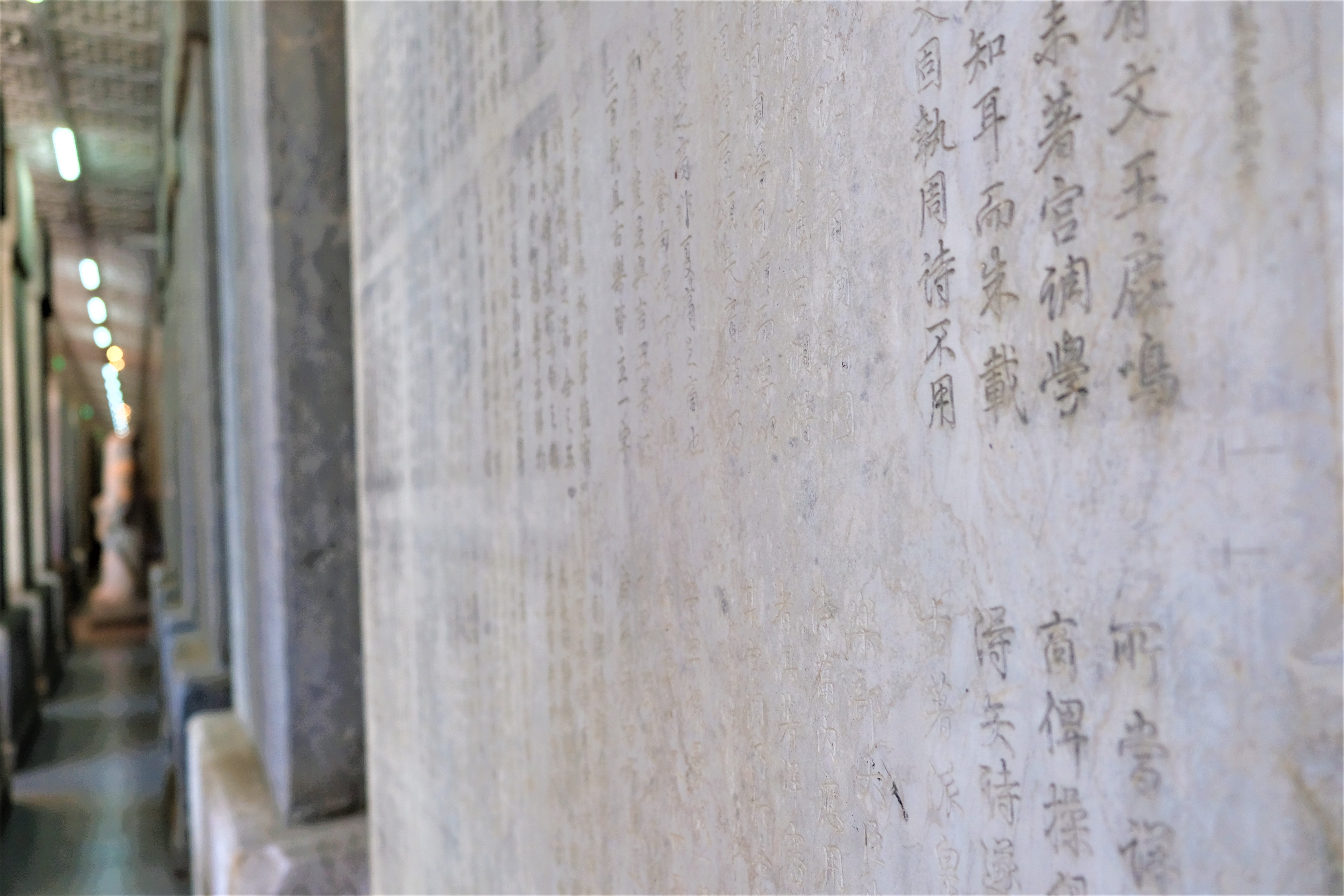 The temple houses hundreds of stone steles detailing the names of all the Jin Shi, those individuals who passed the highest-level exams in the Confucian State Doctrine during the Yuan, Ming, and Qing dynasties. In the adjoining Guozijian Academy or Imperial College, 189 steles feature the over 630,000 chiseled Chinese characters of the 13 Confucian Classics. Wow. That’s a lot of chiseling.