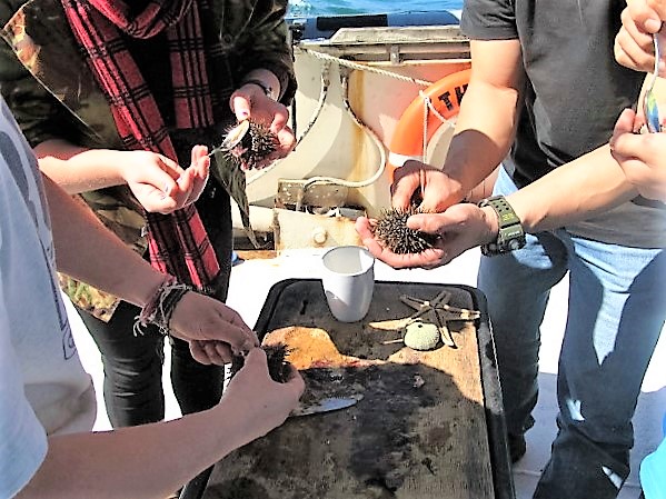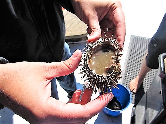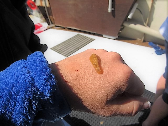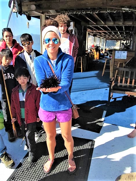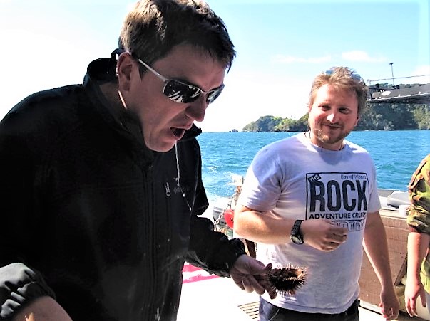 Alas all good things must come to an end. It was back to the Rock for our return journey to Paihia. But the crew had a few more surprises in store for us! Sashimi and kina! When Timo (one of the crew members) pulled out a knife and started splitting sea urchins in two, we didn’t know what to expect. Taking a spoon, he dug out a yellowish goo and placed it on each of our hands. Some fellow travelers from Singapore immediately ate it up and started breaking open their own kina. As it turns out, kina roe is a delicacy! Delicacy or not, it had a salty and slightly briny taste and was one of our more exotic culinary experiences.