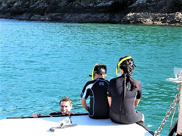 We wandered downstairs to find our captain fishing off the back of the boat and the first mate diving for kina (sea urchins). After some coffee and a lite breakfast, it was time for some diving of our own…and holy moly was that water cold (it was September after all). David, and a few others, braved the waters, but I was content to stay warm and dry onboard the boat. Kina, stingrays, dolphins and other sea life are abundant throughout the crystal clear waters of the Bay of Islands, so scuba diving and snorkeling are some of the most popular activities.