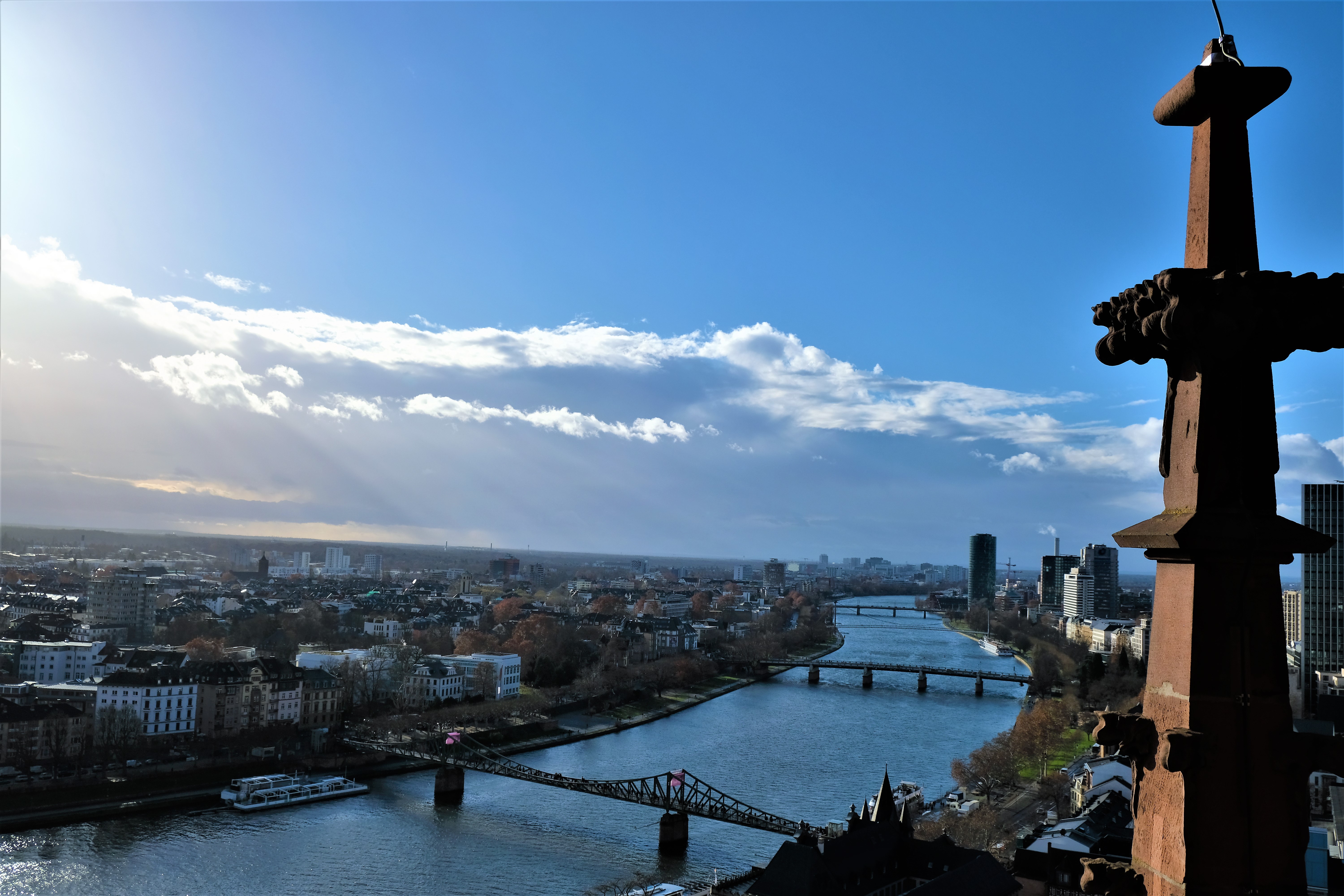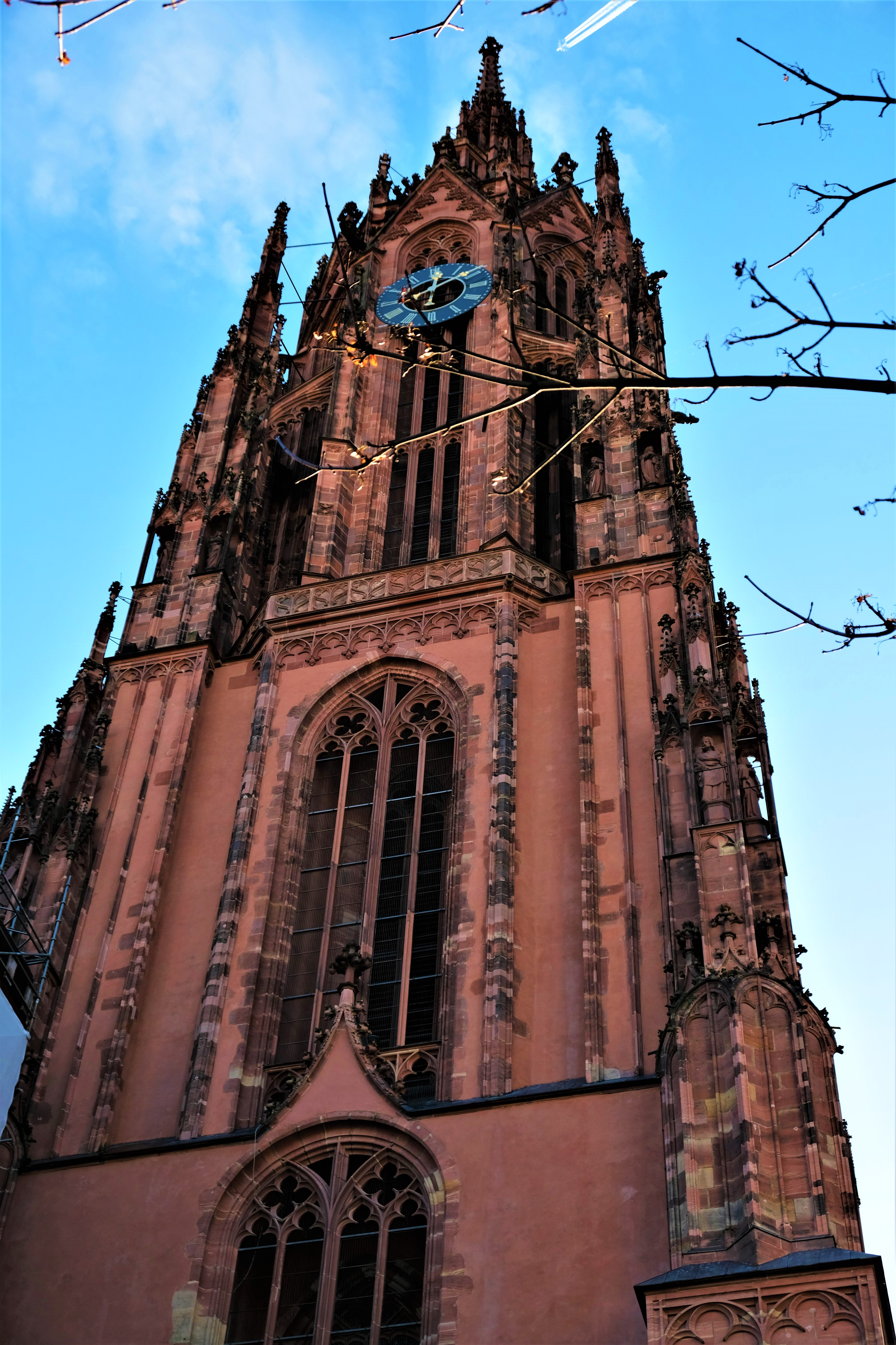 Near the west end of Altstadt is St. Bartholomew’s Cathedral, a Gothic-style Catholic imperial cathedral featuring some beautiful stained-glass windows and Renaissance frescoes. Even amongst the surrounding skyscrapers, the red sandstone building stands out, and I would highly recommend paying the €3 it costs to climb the tower. Be prepared, the winding staircase is steep and narrow, but when you finally reach the top (which at one point I thought would never happen), you are gifted with some spectacular panoramic views of Frankfurt, Römerberg, the River Main, and beyond.